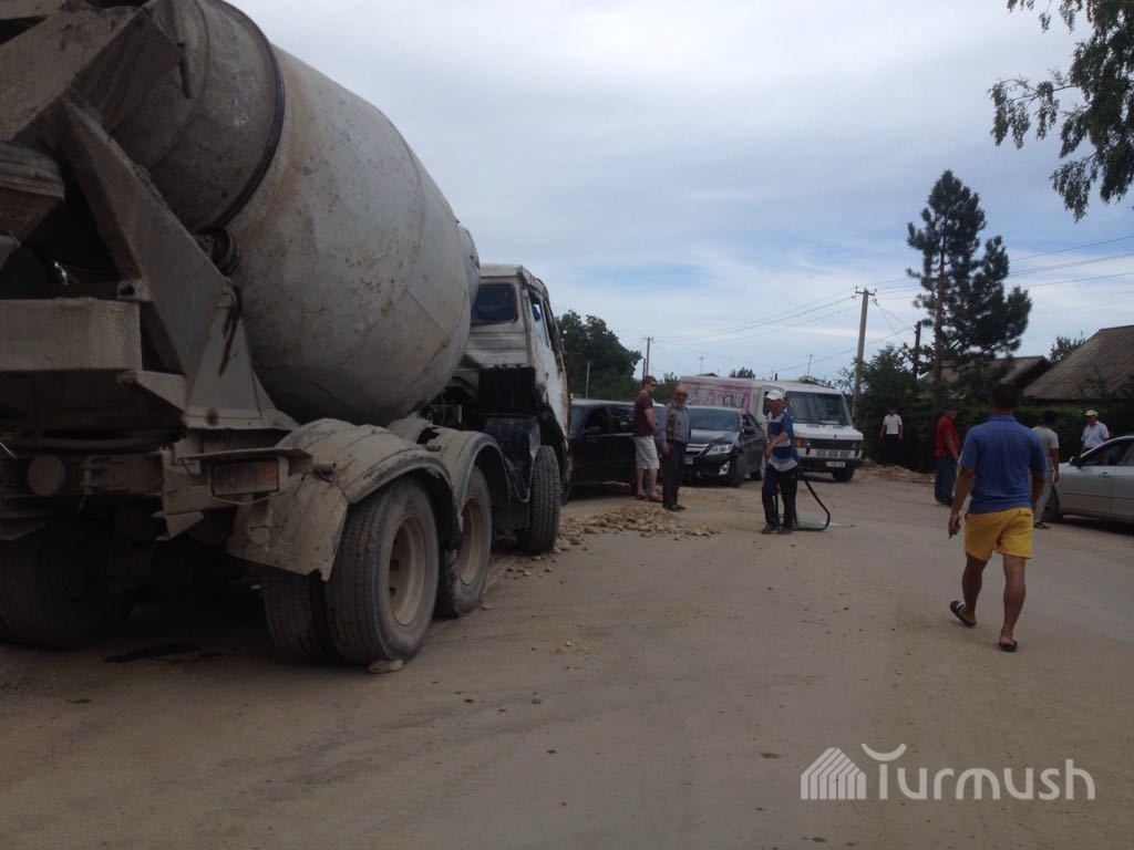Авария на месте строительства дороги Тамчы-Корумду: Бетономешалка упала в траншею, водитель в больнице (фото)